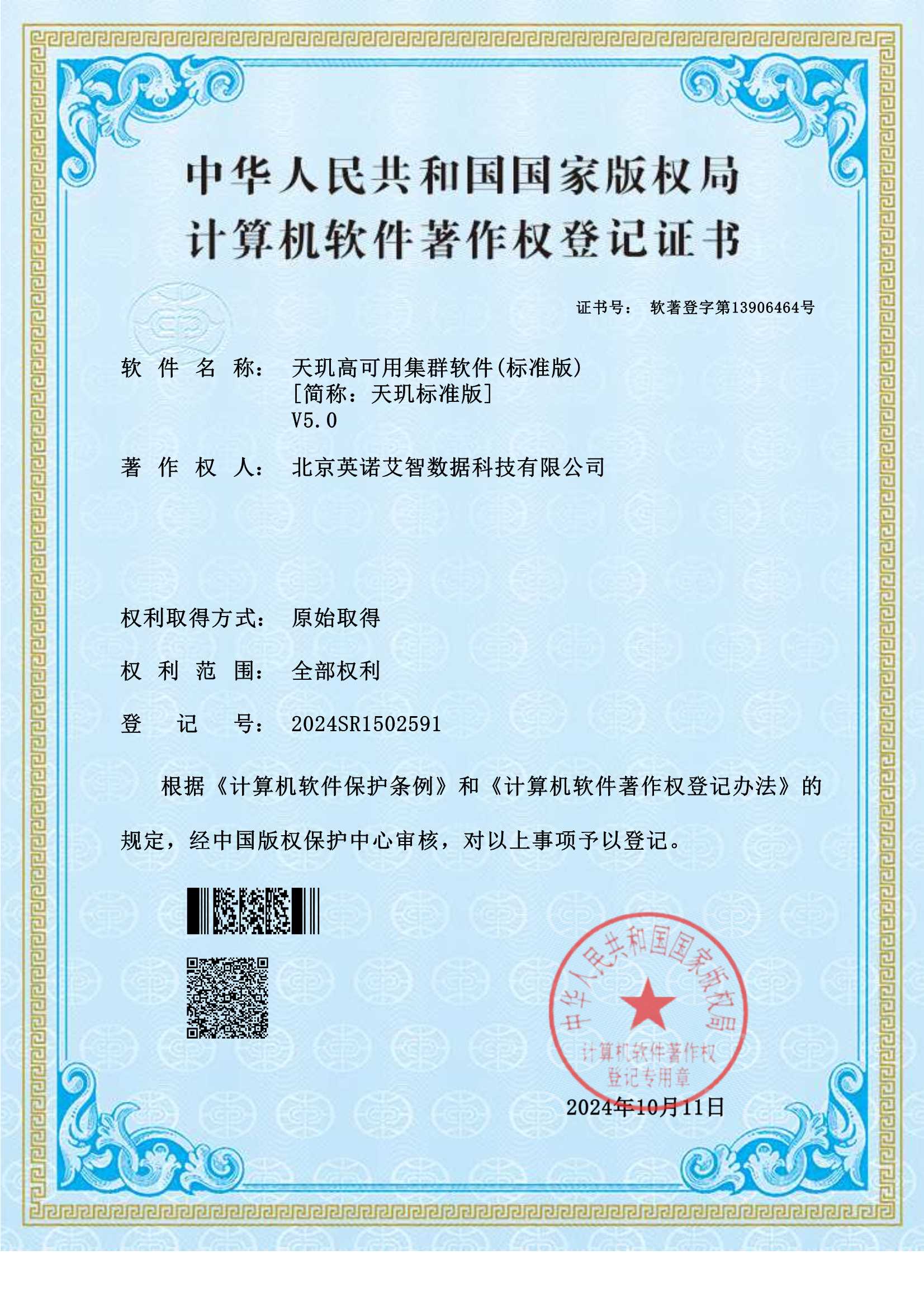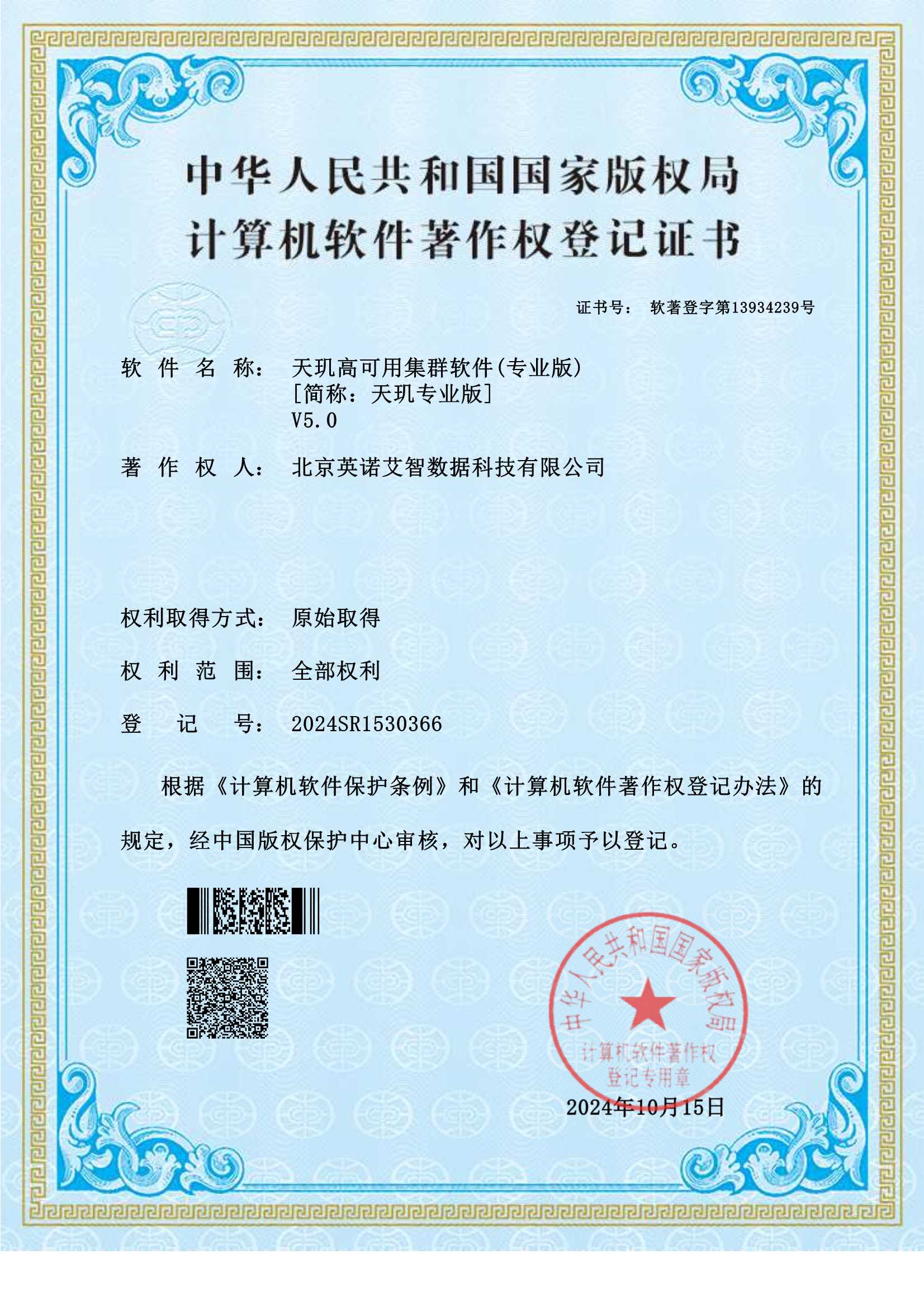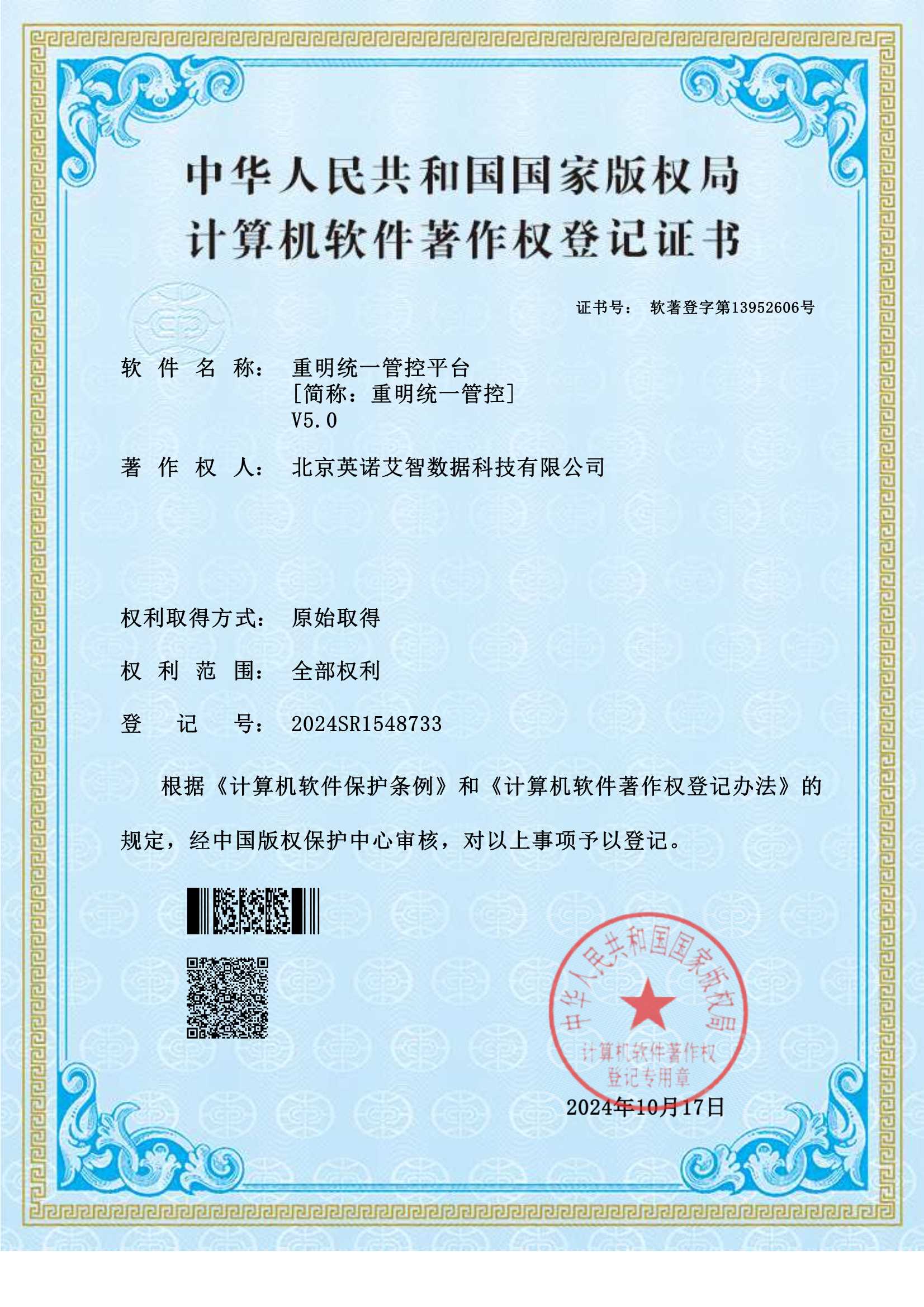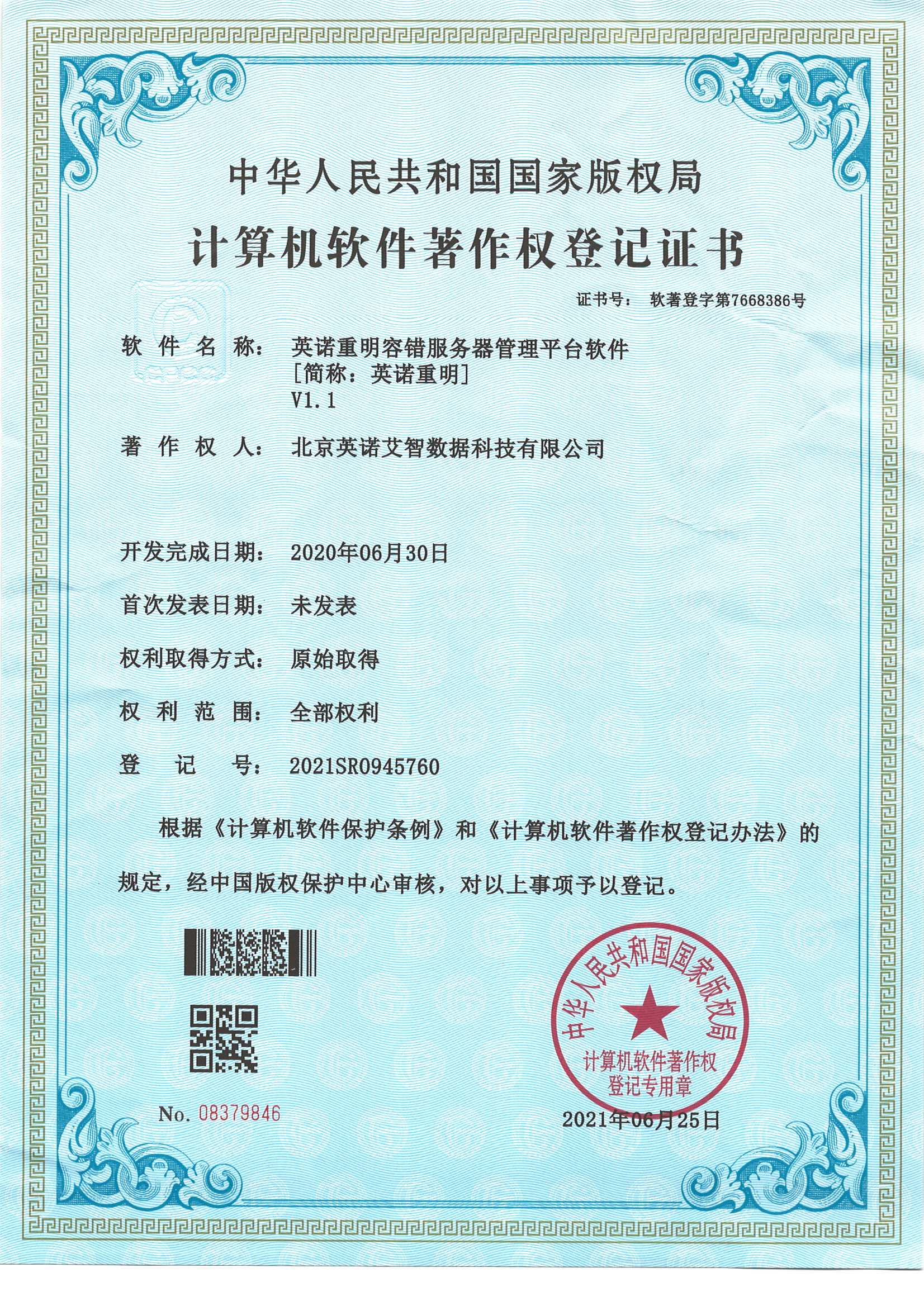 软件著作权登记证书